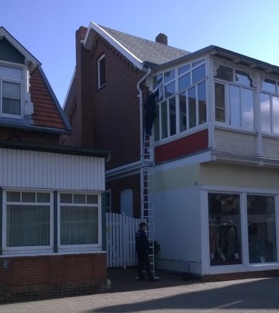Fensterputzen mit mehrteiligen Anlegeleitern
